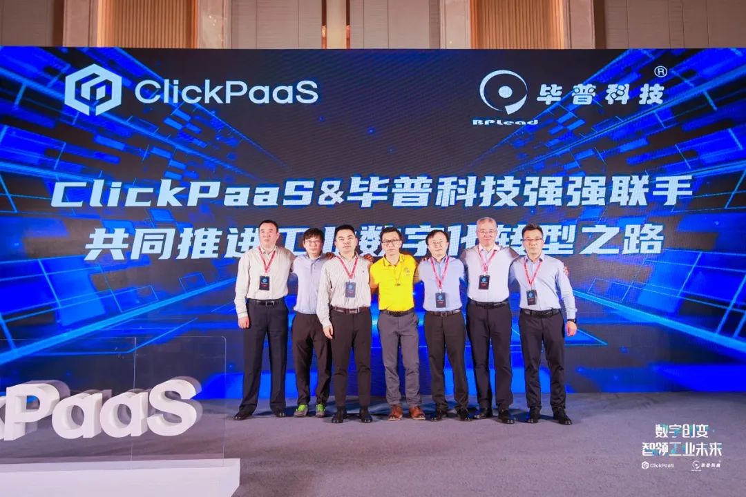 在万众瞩目下,南宫28app入口创始人、CEO胡柏,联合创始人、CTO王復兴,CSO汤滨,以及毕普科技的创始人曾令卫,毕普科技联合创始人许有利、营销副总张晓峰上台共同开启了CP&BP的工业数字化未来。
